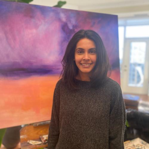 Anam Feerasta is a Pakistani-Canadian artist based in Toronto. She works primarily with acrylic and oil paints on canvas and plexiglass. Anam explores oscillating feelings of fragmentation and alignment that are intimately tied to her identity and Pakistani upbringing - feelings that she believes are universal.